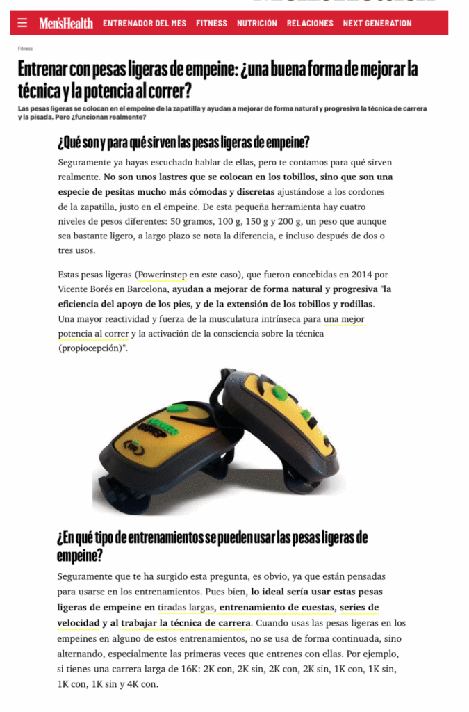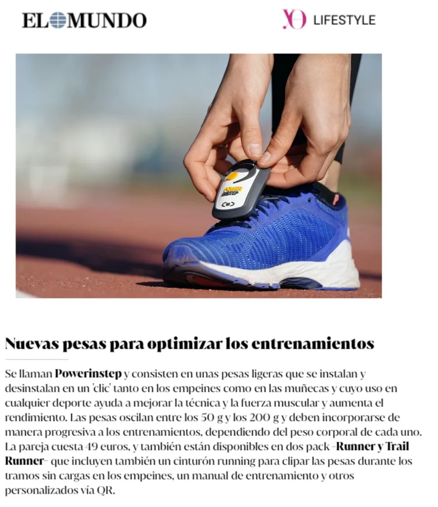 Powerinstep son unas pesas ligeras que se instalan y desinstalan en un ‘clic’ y que pueden ir colocadas tanto en el  empeine como en la muñeca. El objetivo de esta herramienta es mejorar la técnica y fuerza muscular de los deportistas, principalmente corredores.